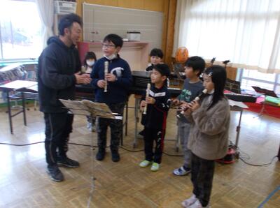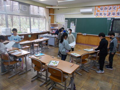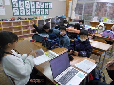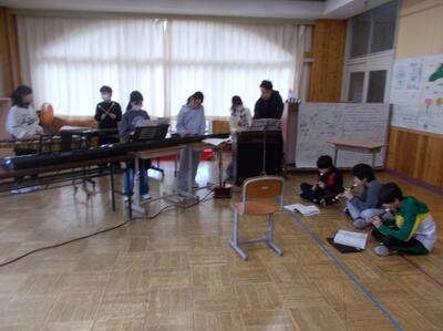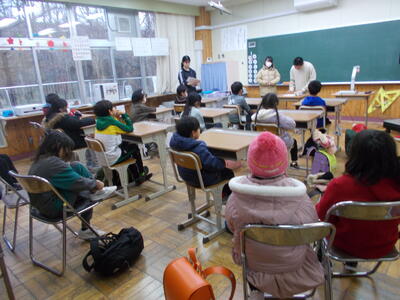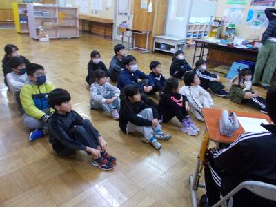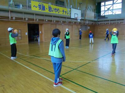 5年生は書き初めで「初春」の文字を書道教室の先生にご指導いただきました。1年生は器械・器具を使っての遊びをどんどんチャレンジしていました。