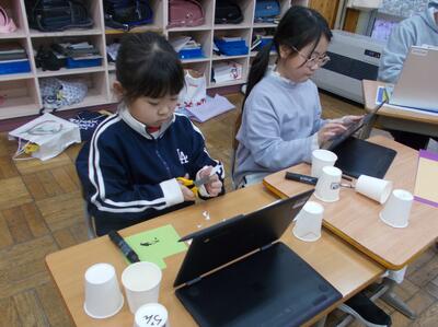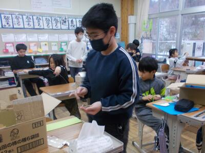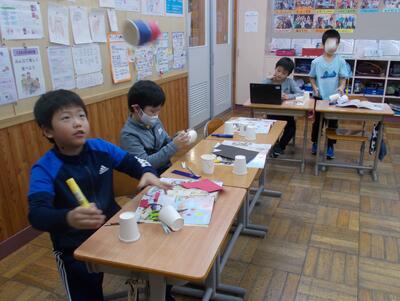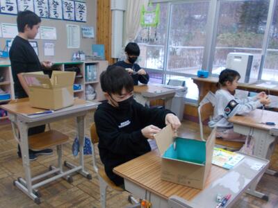 6年生は、算数では総復習を行っていました。これまでの6年間でたくさんの数の概念、数学的思考を身に付けてきたと思います。来春、中学進学に向けてしっかりと力をつけていきたいと思います。みんな真剣に課題に向かっていた姿が印象的でした。また図工では「1枚の板から」を作業中。釘を打ったりニスを塗ったりして、小物入れ、ボール入れ、ゲーム道具入れ、ヘッドフォン台など思い思いの作品を仕上げていました。