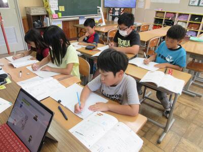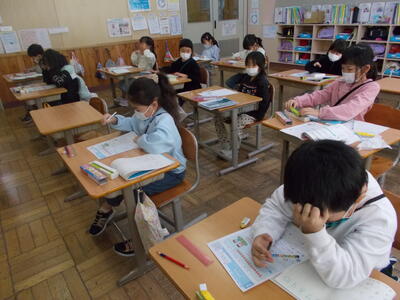 2年生は国語で、「泣いた赤鬼」の学習をしていました。鬼の気持ちはどんなだったのだろうかと、みんなで意見を交わしながら、お互いの発表を受け止めてしっかりと学習に向かっていました。
