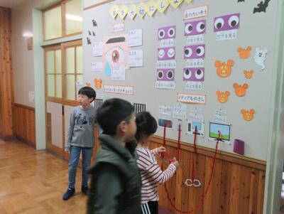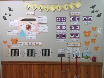 11月4日は「いい姿勢の日」、11月8日は「いい歯の日」。覚えやすいですね。それに伴って保健室前の廊下には、いい姿勢や正しい歯磨きのポイント、そして骨パズル・おかしに含まれる砂糖の量の分かりやすい掲示物が貼られています。健康的な体づくりのためにもとても参考になる掲示物です。ぜひ見に来てほしいです。