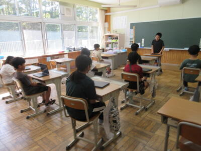 学校に残っている5,6年生は通常の授業ですが、今日は稚内警察署の方が情報モラル教育を実施してくださいました。SNSに潜む危険、特に個人情報の取り扱いについて、どんな危険が潜んでいるかを考える内容でした。また、アナログの世界はいろんなものと触れ合える。デジタルの世界は自分の興味のあるものばかりしか触れないが、便利なツールである。これからは、デジタルとアナログを上手に使い分けてほしいとのメッセージが印象的でした。