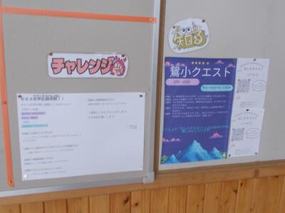 5年生の国語で、学校を楽しくするための活動を行っています。鴛小クエストやギネスに挑戦、感謝の木、学校のヒヤリハットについてなど、これまで準備してきたことを全校の皆さんに楽しんでもらおうと掲示されました。休み時間にはQRコードを読み取りクイズなどを楽しんでいる子どもたちがいました。今週1週間取り組むそうです。ぜひ参加してみてくださいね…。