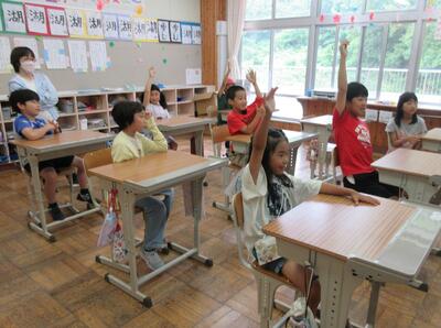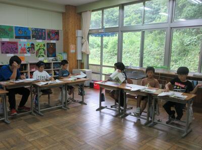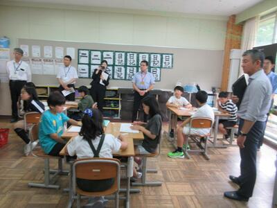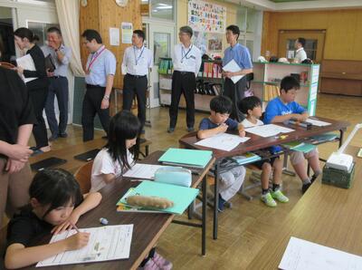 本日は、北海道教育委員会教育長様、総務政策局教育政策課長様、宗谷教育局局長様、義務教育指導監様、教育支援課長様、利尻富士町教育委員会教育長様、次長様が学校を訪問してくださいました。学校の概要を説明させていただいた後は、3年生以上の授業を参観いただきました。子どもたちがいきいきと頑張っていますね、と仰っていただき、嬉しかったです。今後も鴛小の子どもたちが明るく元気に過ごせるよう頑張っていきたいと思います。いつになく蒸し暑い日で大変だったと思いますが、お越しいただき、本当にありがとうございました。