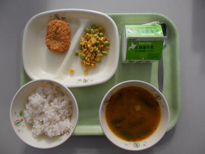 ふゆやさいカレー かぼちゃコロッケ 枝豆コーンソテー 牛乳