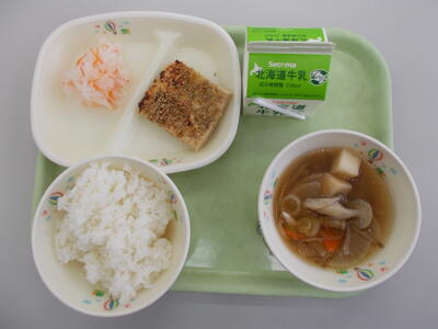 白飯 雑煮風すまし汁 松風焼き 紅白なます 牛乳