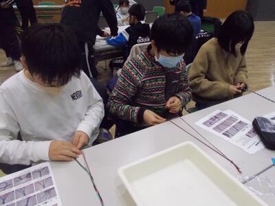5,6年生はりぷらで、漁業士会の方々から「ほっけ漁業」について学ぶ機会がありました。ほっけってどんな魚かや、利尻島で行われている刺し網漁業の様子を映像で学びました。後半は、漁師が使用している頑丈な網でミサンガを作りました。きっと切れないと思うので、自分で作ったミサンガは一生ものですね。ご指導くださった漁業士会の皆様、ありがとうございました。