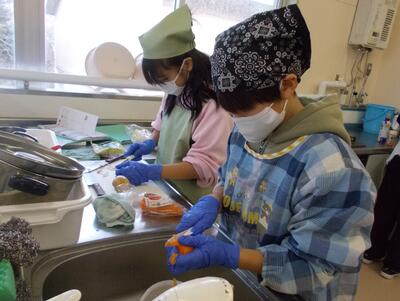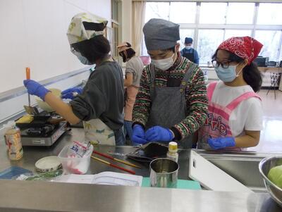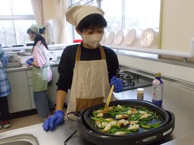 6年生は調理実習もありました。卵焼きやオムレツ、ちくわとピーマンいため、味噌汁…などを、班ごとにメニューを工夫して調理していました。おいしく調理できたようですよ。