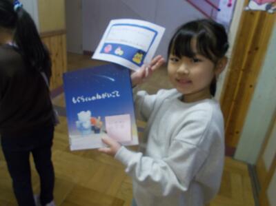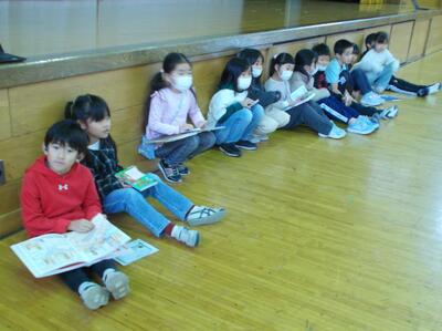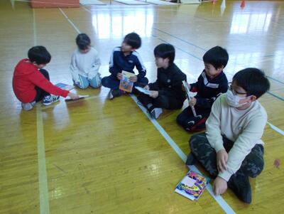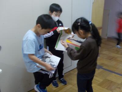 今日は雪⛄です。図書委員会企画のレクが催されました。本に親しみ、本に触れる…、そんな素敵な企画です。朝、図書委員会のメンバーが校舎内のあちらこちらに本を隠しておき、中休みに児童が一斉に本をさがす旅にでかけました。本は「低学年」「中学年」「高学年」ごとにゲットできる本が決まっています。本にはクイズの問題が挟まっていて、その本を読めば答えられるようになっており、正解すると景品がもらえるのだそうです。回答の期限は2週間先なのですが、早速読み始めてクイズに答えようと頑張っている児童もいました。なんだかクリスマスプレゼントをもらったかのように、みんなとっても楽しそうにレクに参加していました。これをきっかけに、もっともっと本に親しんでほしいですね…。図書委員会の皆さん、楽しい企画ありがとうございました!