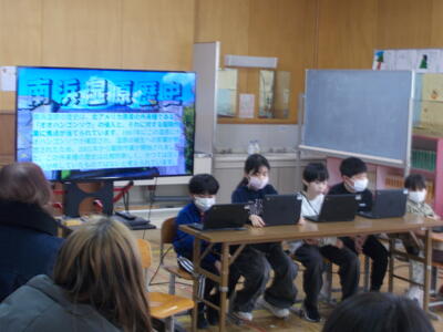 3,4年生が3,4時間目に総合的な学習の時間で、これまで学んできた利尻の自然についてまとめたことの発表会を行いました。これまでご指導いただいた自然ガイドの方をお招きし、また保護者の参観もありました。児童は、自分の言葉でしっかりとまとめたことを伝えていました。(午後には、3,4年生の参観・懇談も実施しています。)