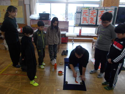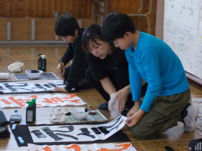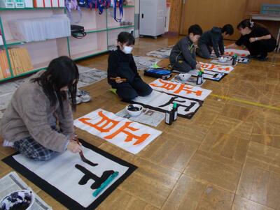 3,4年生が書き初めに取り組んでいます。今年も書道教室の方にもアドバイスをいただきながら、挑戦します。3年生は「正月」、4年生は「元気」という字を、ちょっと緊張しながらも、集中して堂々とした字を書こうと頑張っていました。上手に書けたものを校内書き初め展に出すので、余計に張り切っていたのかもしれません。ご指導いただき、ありがとうございます。
