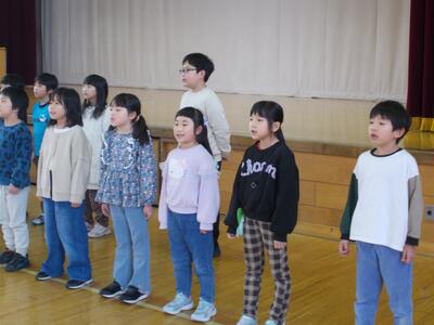 その後、合唱発表で1~4年生の「YUME日和」、5,6年生の「この地球のどこかで」が披露されました。みんな心を込めて歌い、素敵な歌声を響かせてくれました。感動してしまい、思わず涙が…。合唱に限らずですが、この9か月間の子どもたちの表現力の成長を改めて実感した日となりました。