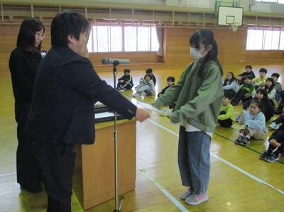 全校集会で、校内書き初め書道展と海の子作品展(書道の部)の表彰を行いました。第66回みな貯金運動協賛海の子作品展で、なんと北海道教育委員会教育長賞を受賞。とっても素晴らしい賞ですね。校内書き初めも海の子作品も、とにかく挑戦する姿勢が素敵です。これからも色んなことにチャレンジできる鴛小の子どもたちでいてくださいね…。
