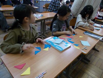 授業参観・学級懇談会が始まりました。今日は1年生のみ行われました。算数の授業で「かたちをつくろう」に取り組んでいます。三角形の色紙を組み合わせて、様々な図形を作ります。先生からお題を出されて、わかったら先生に見せてOKをもらいます。脳をフル回転させて一生懸命考えている子どもたち。高学年になると図形の問題が苦手になってくる児童もいるので、今のうちに概念を理解していけるといいですね…。授業後は懇談会も予定されています。保護者の皆様、お忙しい中お越しいただきましてありがとうございます。明日は高学年、明後日は中学年が予定されています。(2年生は都合により、明後日に延期しています。ご迷惑をおかけして申し訳ありません。)