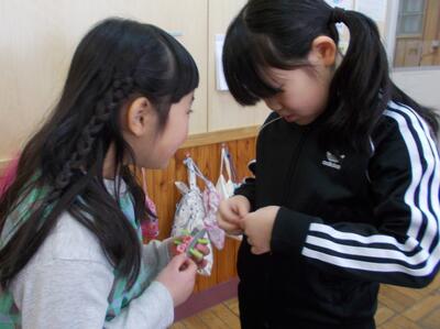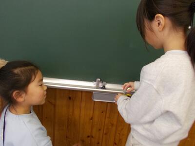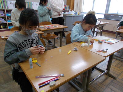 2年生は生活の時間で、1年生を楽しませるゲームを作成中。グループで、あるいは個人でどんな遊びができるのかを考えて作っていました。実際に1年生に遊んでもらったときに喜んでもらえるといいですね…。