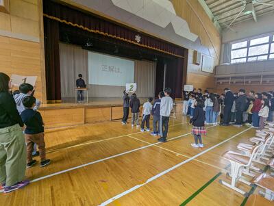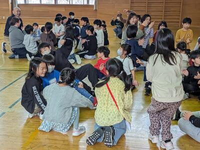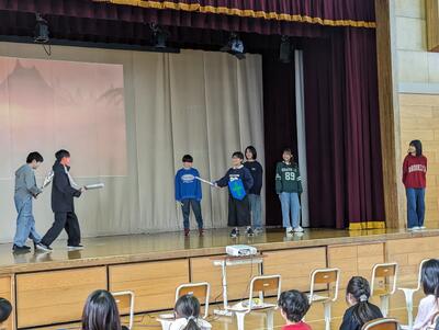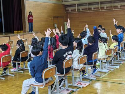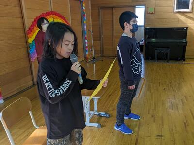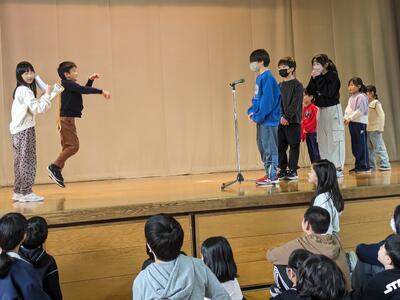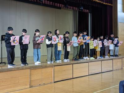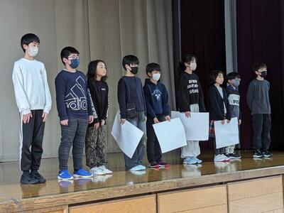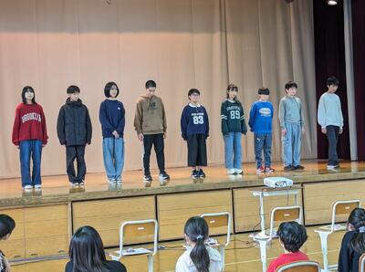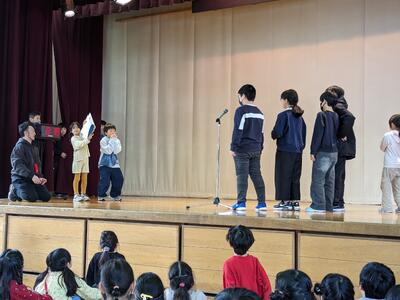 今日は、6年生を送る会がありました。5年生が進行を務め、1,2年生の「猛獣狩りに行こう」、3,4年生の「縦割り班ジェスチャーゲーム」、5年生の「6年生クイズ」、6年生の「劇」が行われました。どれも交流ができたり、みんなが楽しめたりするものばかり。6年生には1~5年生までのメッセージが書かれた色紙もプレゼントされました。感謝の気持ちが込められた素敵な送る会になりました。