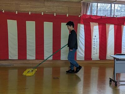 6年生は、校舎内の清掃を行いました。これまでの6年間の感謝の気持ちを込めて、一生懸命取り組んでいました。校舎への感謝の思いが感じられる姿でした。