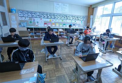 5年生は、総合の発表で、利尻島の課題と関連付けながら、15年後の自分についてニュース形式の動画にして発表しました。中学・高校・大学、そして社会に出てからの自分の未来のロードマップを考えた構成となっていました。お互いの動画を見合いながら交流していました。