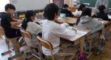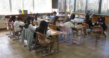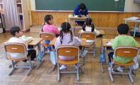 算数でマス計算に取り組んでいる2年生。真剣です。その集中を邪魔してはいけないので教室の外から撮影。