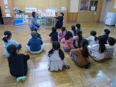 この取組は、教委委員会とボランティアの方々が、毎週子どもたちに読み聞かせをしてくれるものです。