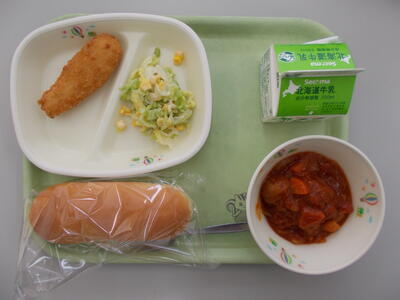 バターパン 肉団子のトマト煮 ササミカツ コーンサラダ 牛乳
