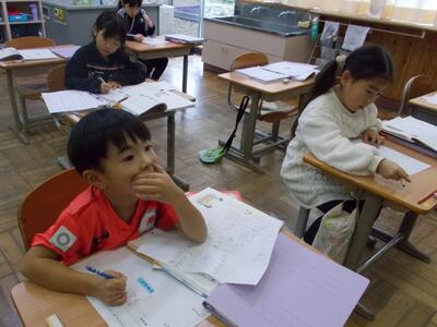 3・4年生は、学習発表会を振り返る作文を書いていました。自分たちの経験を丁寧に言葉にしていました。