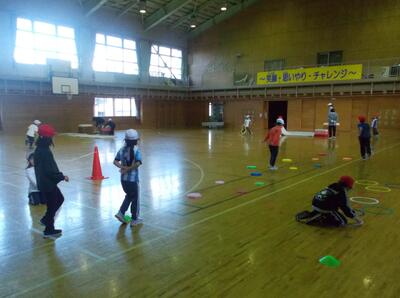 1年生が、体育で「跳ぶ運動遊び」を行っていました。跳ぶに特化した遊び場がいくつか設定されており、場所を移動しながらそれぞれ挑戦していました。体の使い方、身のこなし…etc、こういう経験を楽しみながらたくさんして、バランスの良い体つくりができるといいですね…。